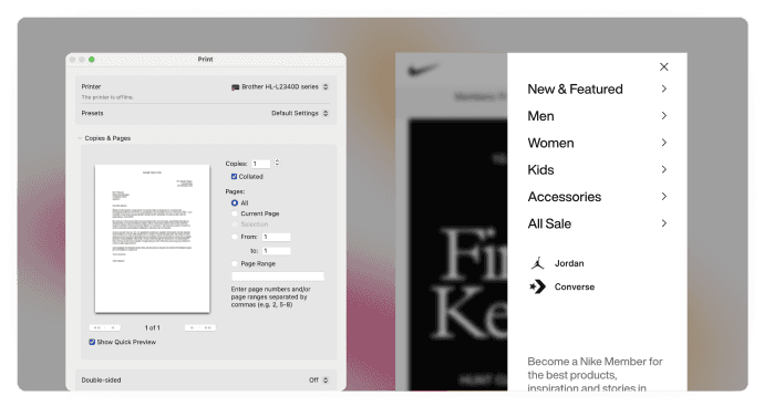 Example: Printing interface & side navigation bars